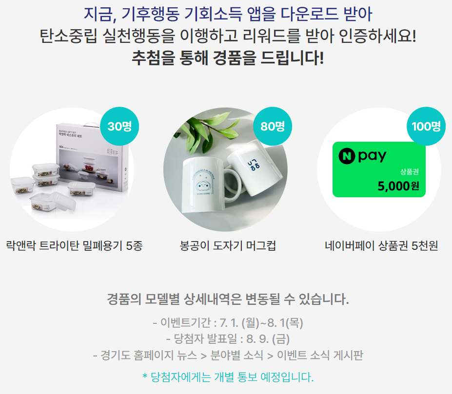 ● 참여 방법 : 기후행동 기회소득 앱 설치 > 경기도민 인증 후 활동 참여