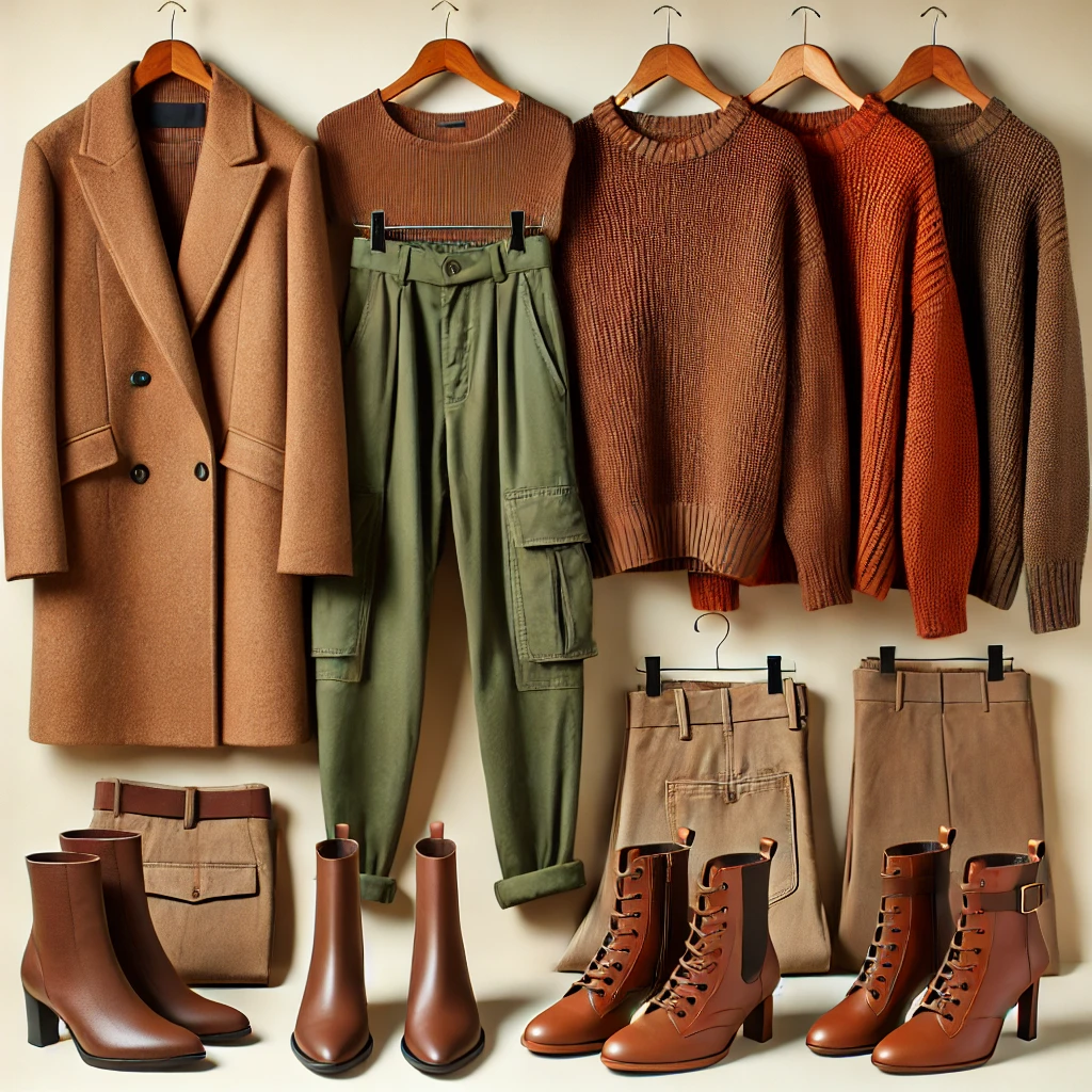 어스톤은 2024년 가을을 대표하는 컬러 팔레트입니다. 카멜, 올리브, 테라코타와 같은 따뜻한 색조는 계절감과 함께 스타일리시한 룩을 완성해 줍니다.
